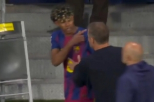 体育资讯4月6日讯 西甲第30轮比赛,巴萨客场2-1击败马竞,巴萨球员亚马尔赛后情绪不佳,愤怒离场。